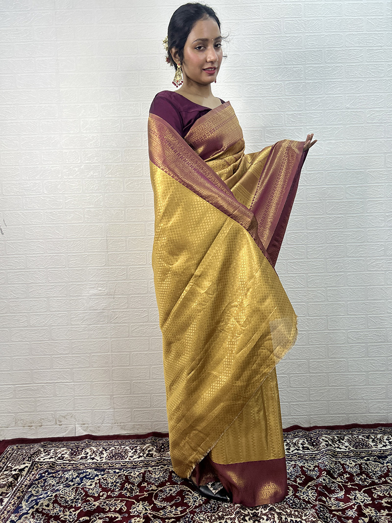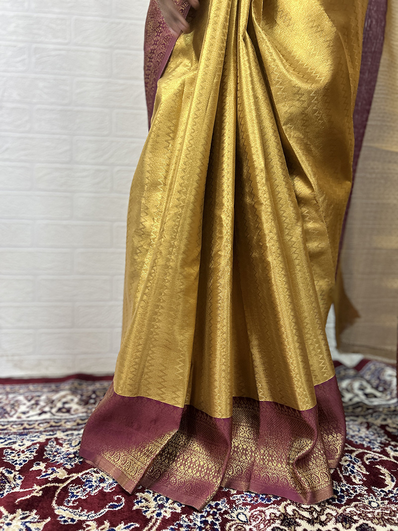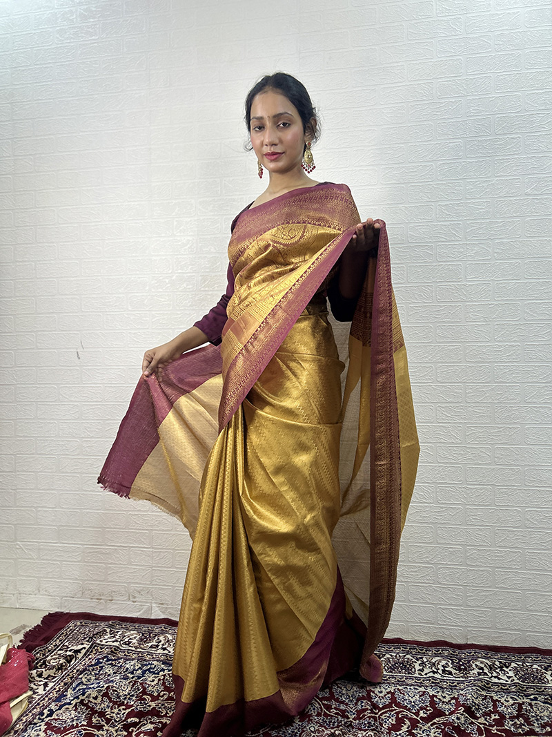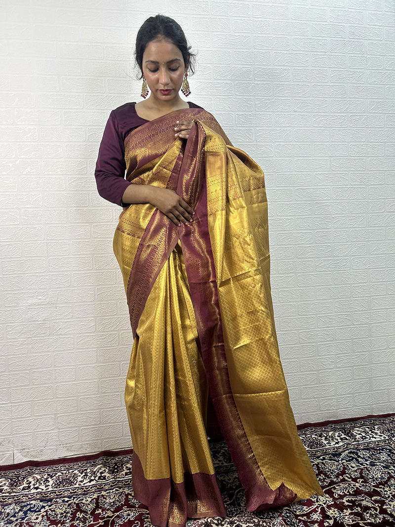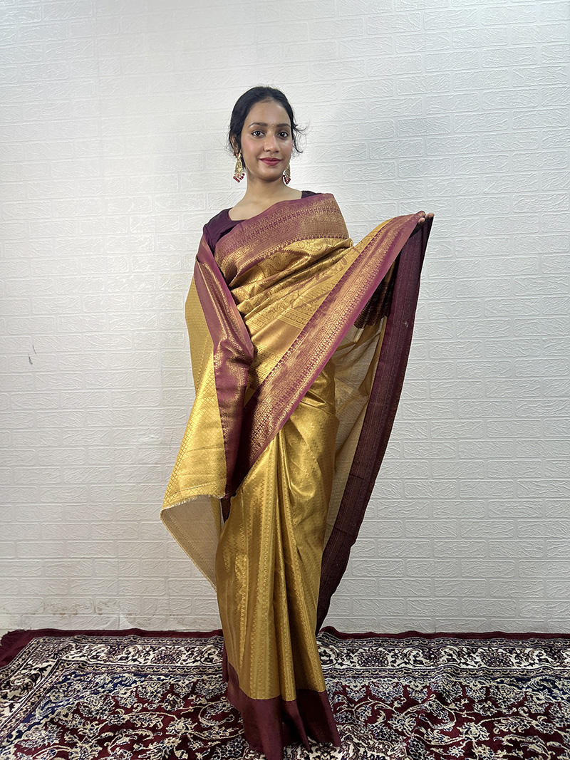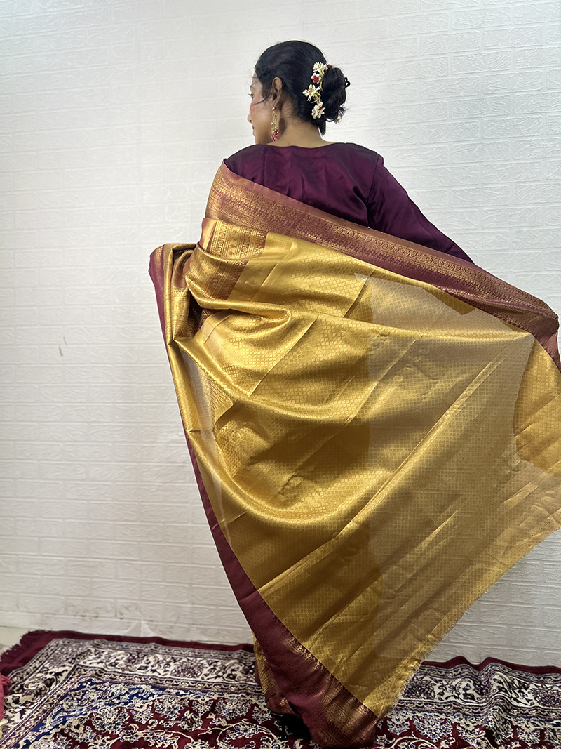 - Saree Colour: Maroon Silk Border with intricate gold zari woven patterns